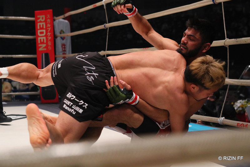 サトシをテイクダウンする徳留(左)