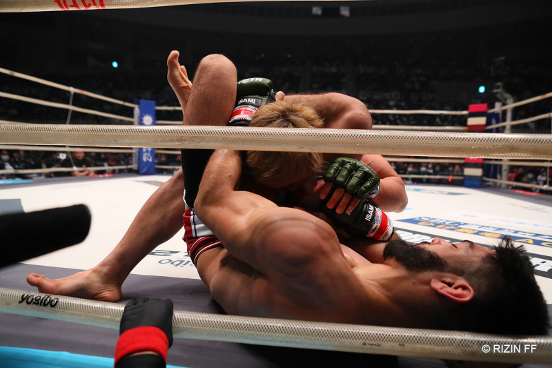 徳留に三角絞めを極めるサトシ