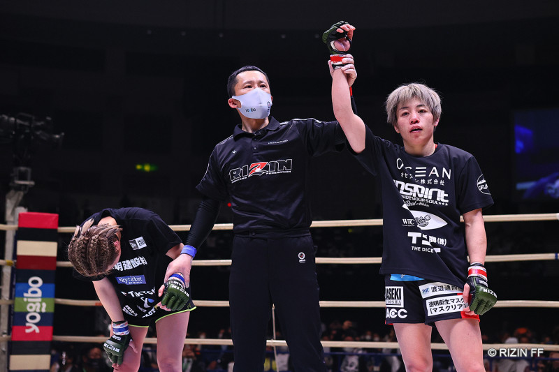肩を落とす浅倉(左)と勝利した浜崎(右)©️RIZIN FF