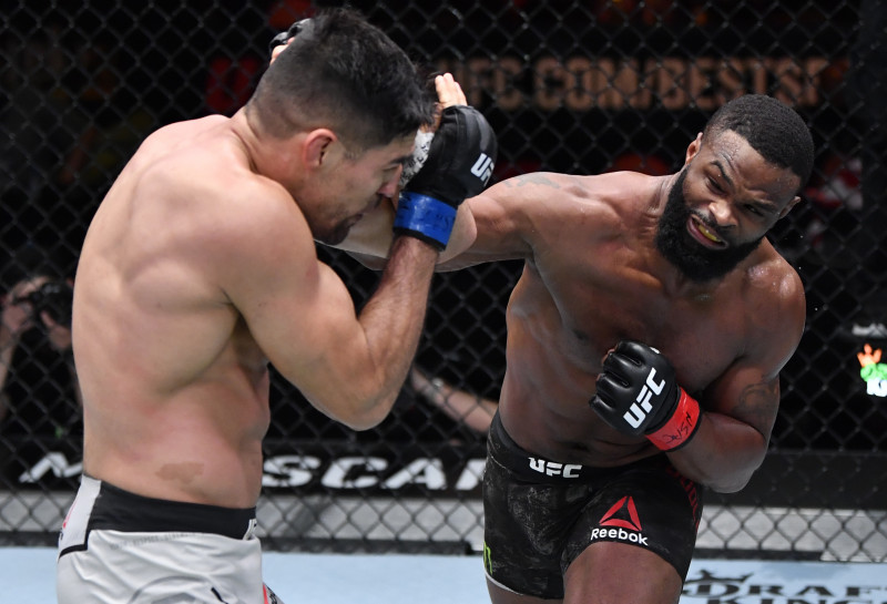 元ウェルター級王者ウッドリーが痛恨の一本負け!打撃で応戦するウッドリー(右)(©Getty Images/UFC)