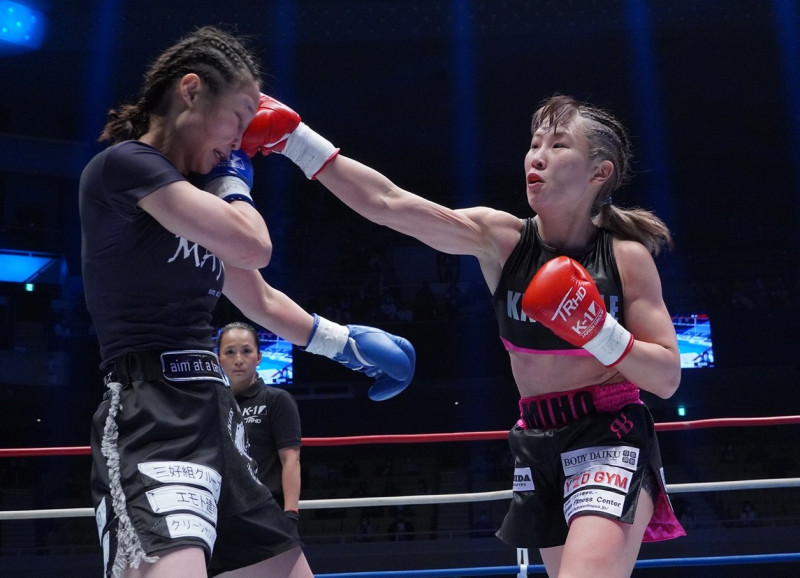 強烈なパンチをMARIの顔面に叩き込む高梨