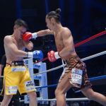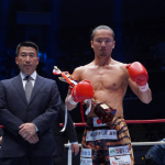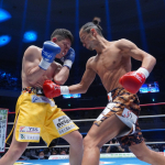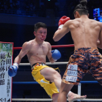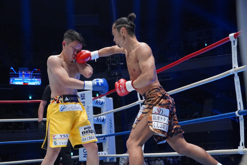 島野浩太朗が強烈な右を三輪裕樹にヒットさせる