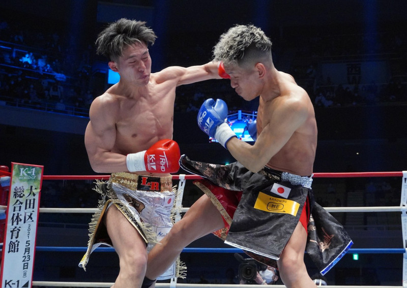 強烈な左をヒットさせた横山(左)