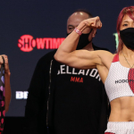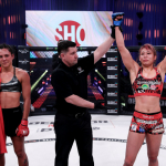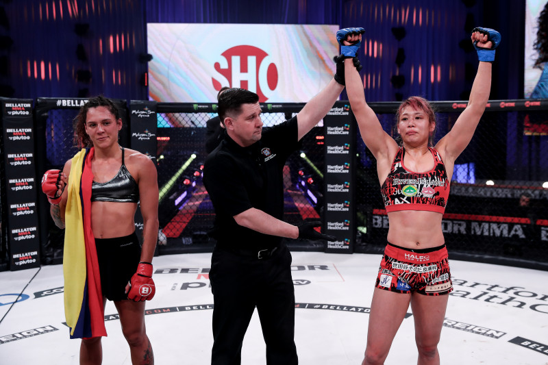 ララに競り勝ち、米国デビュー戦を白星で飾った渡辺(右)©️Bellator