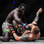 “セネガル相撲の英雄”ケインが強烈なパウンド連打!©️ONE Championship