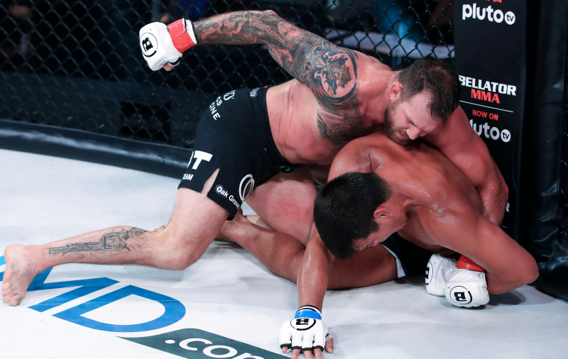 マチダ(右)に強烈なパウンドを落とし続けたベイダー(左)©️Bellator