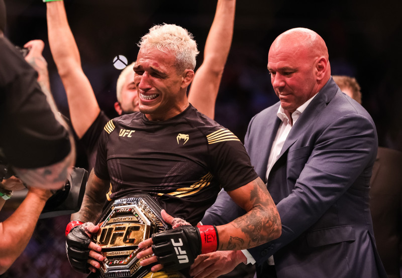 ライト級のベルトを巻き、感涙するオリベイラ©️UFC