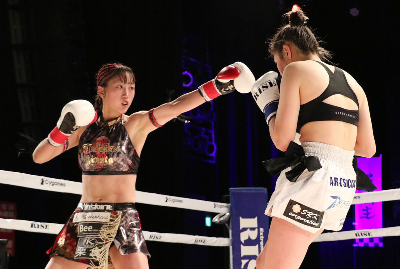 寺山(左)がAKARI (左)に判定勝利し初防衛に成功