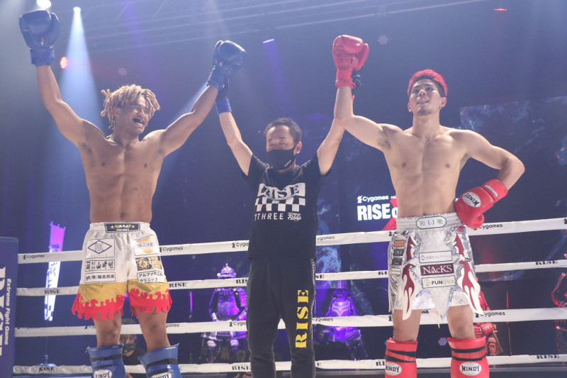 原口健飛(右)とベイノア(左)がド迫力のエキシビション