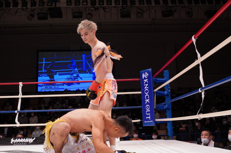KO勝利した栗秋(左)