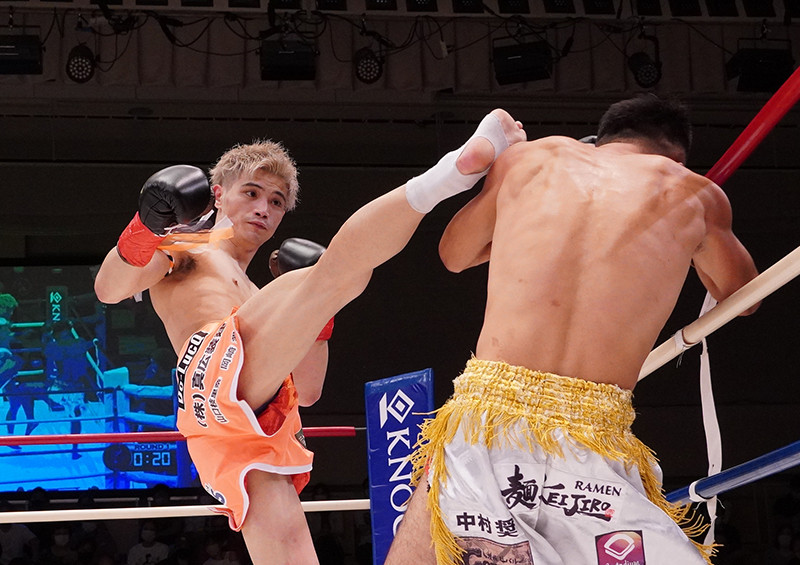 栗秋(左)の右ハイキックが炸裂した