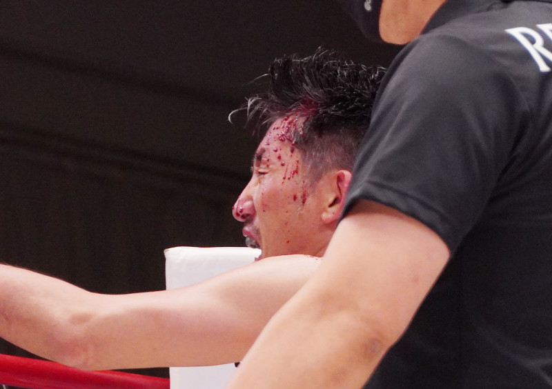 松崎の頭部の大流血は止まらずドクターストップに