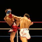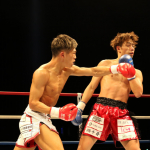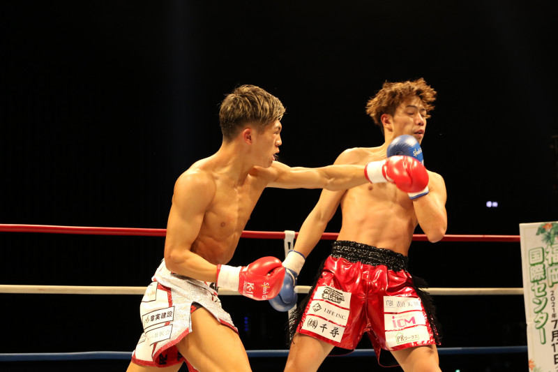 強烈なパンチを当てる斗麗(左)