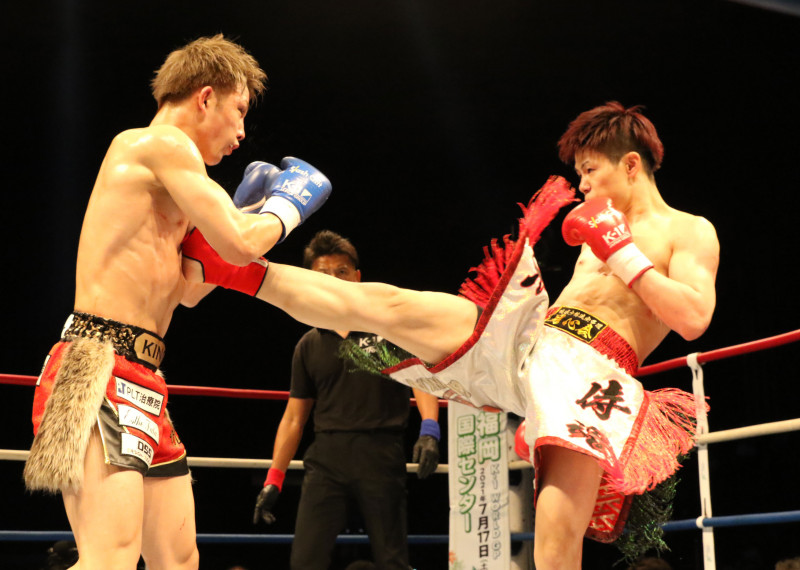 前蹴りで攻める椿原
