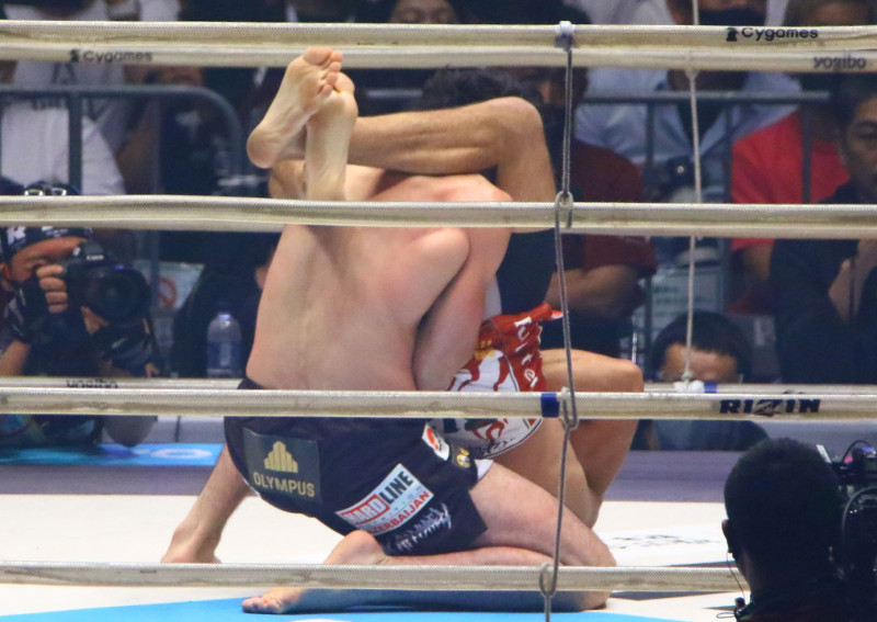 サトシの三角絞めがガッチリと極まる