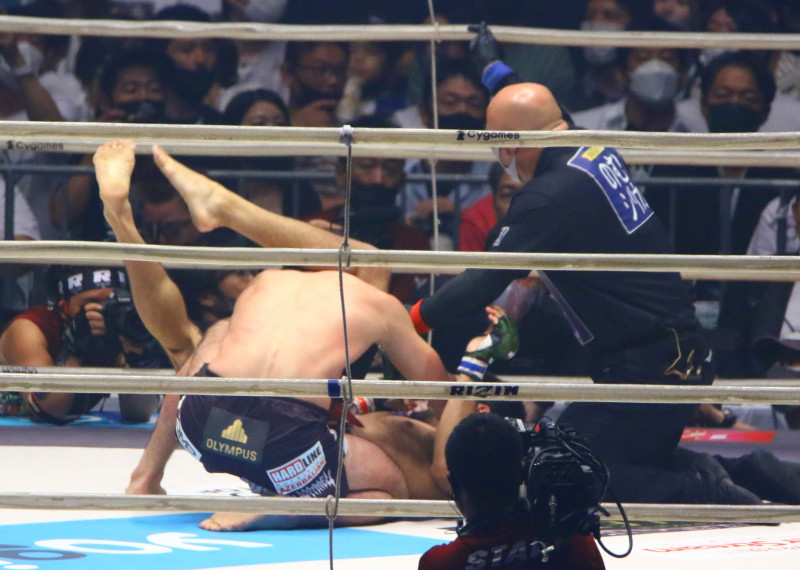 三角絞めが極まり、レフェリーが止めに入った瞬間