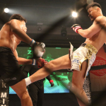 右ミドルを放つ住村竜市朗