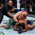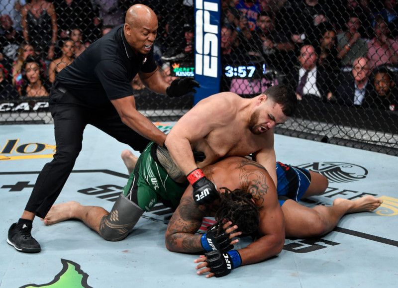 120kg巨漢同士の殴り合い!倒れたハーディにパウンド連打!(©Getty Images/UFC)