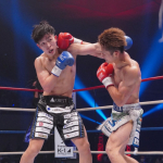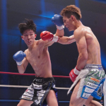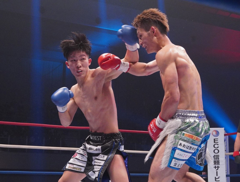 左のパンチを当てる寺田