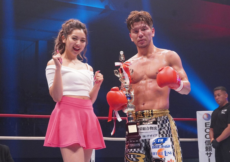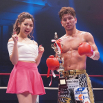 この試合でラウンドガールを務めた、ゆきぽよ(左)と山本