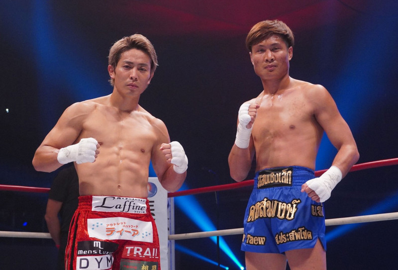 対戦相手が欠場となった大岩(左)とマキ(右)がエキシビションマッチで拳を交えた
