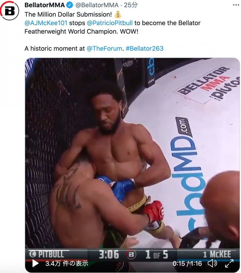マッキーがピットブルをギロチンチョーク葬!@BellatorMMAより