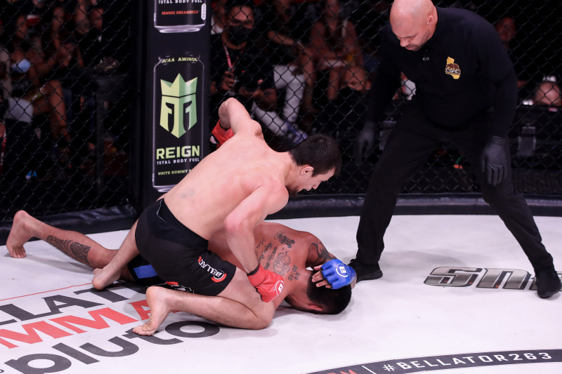 ヒザ蹴りの後はトドメのパウンド©️Bellator