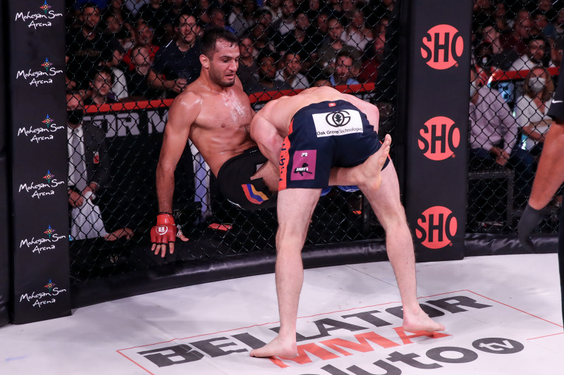 ソルターにテイクダウンを許すムサシ©️Bellator