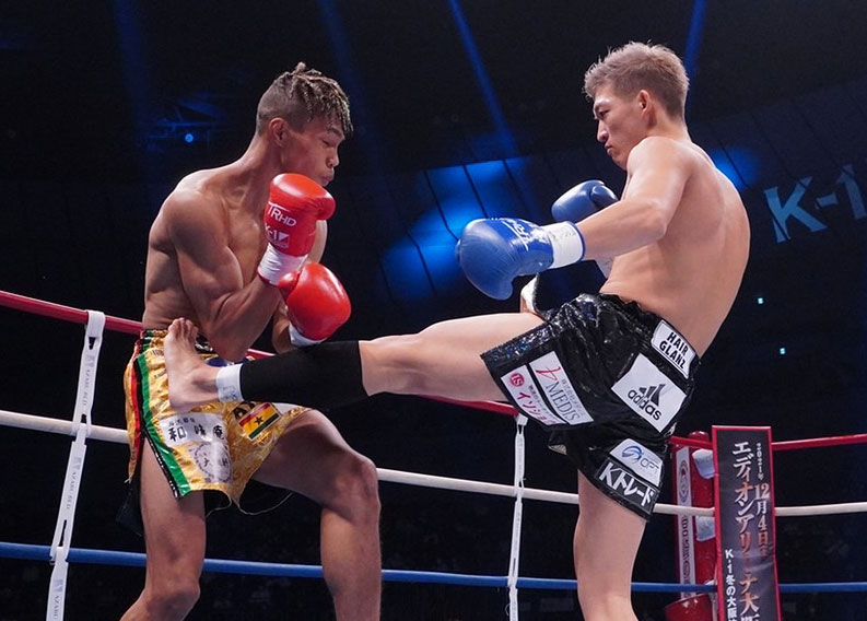 左前蹴りを効かせる野杁