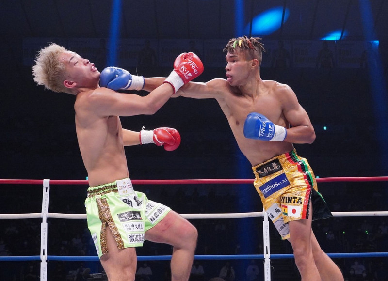 右ストレートを放つアリ