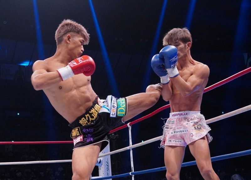 ミドルキックを効かせる朝久