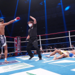 19歳・龍華(左)がKO勝利、ラウンドガールを務めた小林幸子(右)も祝福