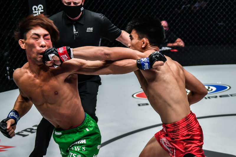 背を向けた猿田にパシオのパンチがヒット!©️ONE