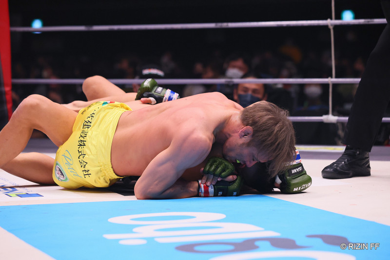 肩固めを仕掛ける金原