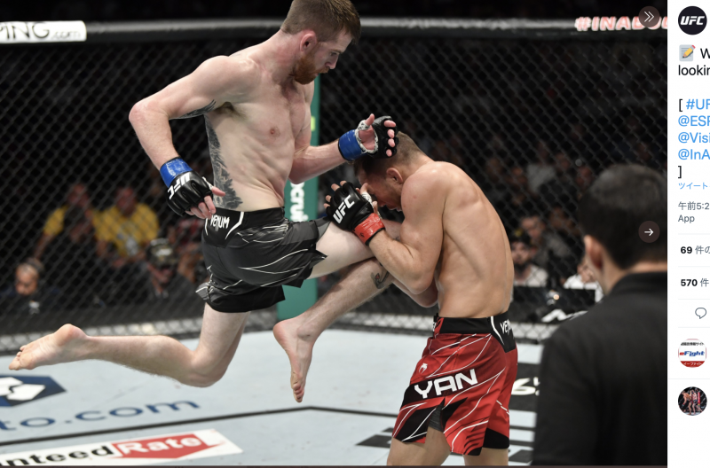 サンドヘイゲンの飛びヒザ蹴りがヒット(UFC Twitterより)