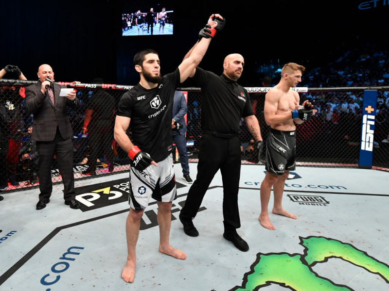 フッカー(右)に何もさせず一本勝ちしたマカチェフ(左)©️UFC