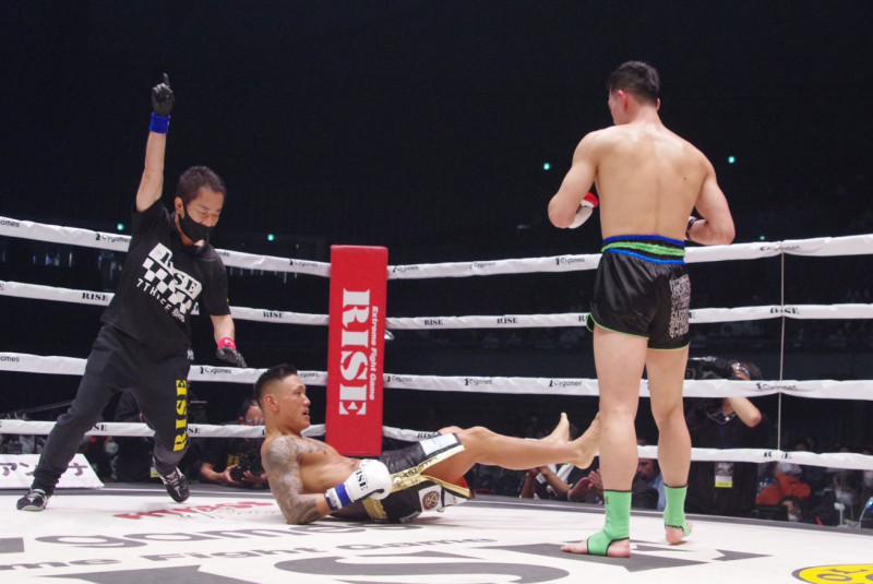 中野の右ストレートで蛇鬼がダウンの瞬間