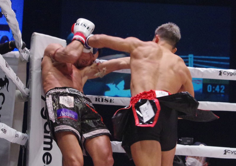 大雅の強烈なパンチが梅野にヒット