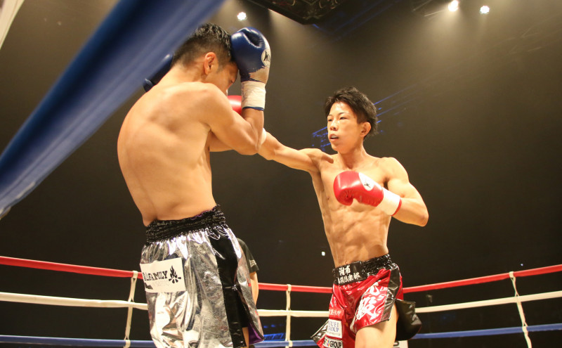 1R、大鹿(右)が優勢に試合を進め、判定で勝利
