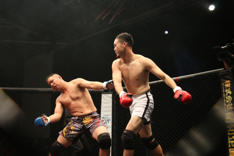 丸田がどんどん前に出てパンチを連打、打ち合いを制した