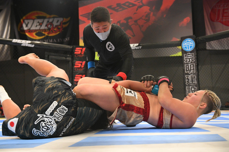 KINGレイナのアームバーがガッチリと極まる(C)DEEP