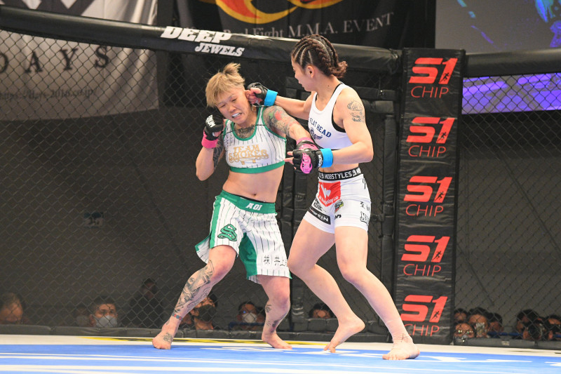 パンチで攻めるケイト(右)(C)DEEP
