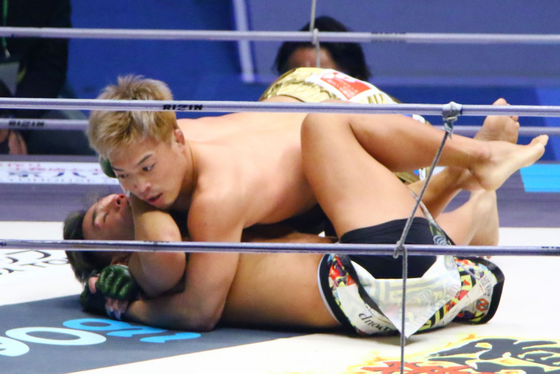 五輪レスリング力を見せつけるように、相手をガッチリ押さえ込む太田