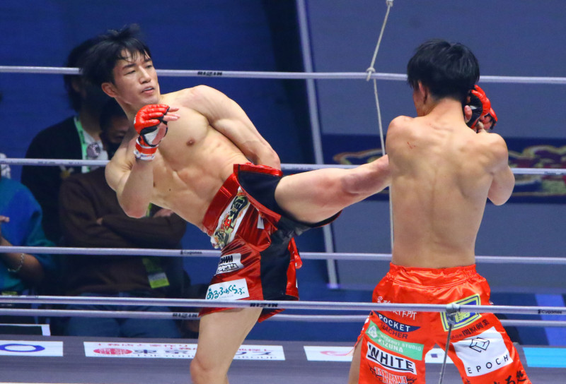 朝倉がハイキックを放つ