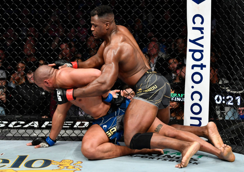 グラウンド展開で圧倒するガヌー(右)@UFC