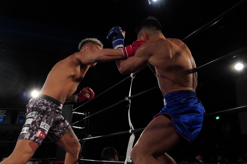 山口の右フックがヒット