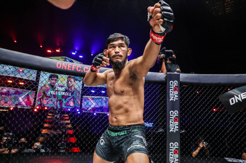 “ミャンマー英雄”ンサンが弓を引くポーズで入場(C)ONE