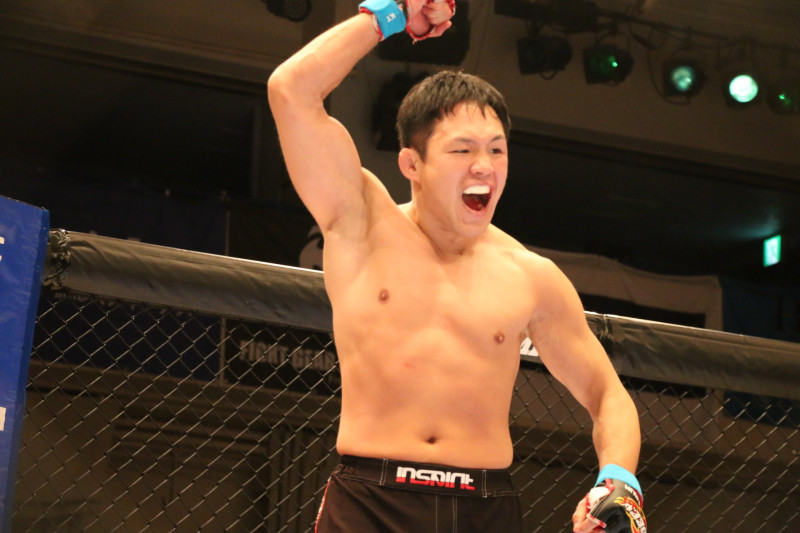 勝利に歓喜する石塚