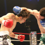 佐々木はパンチを何度もヒットさせダウンを奪い、判定に差をつけた