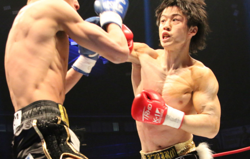 右のパンチで攻め立てる金子